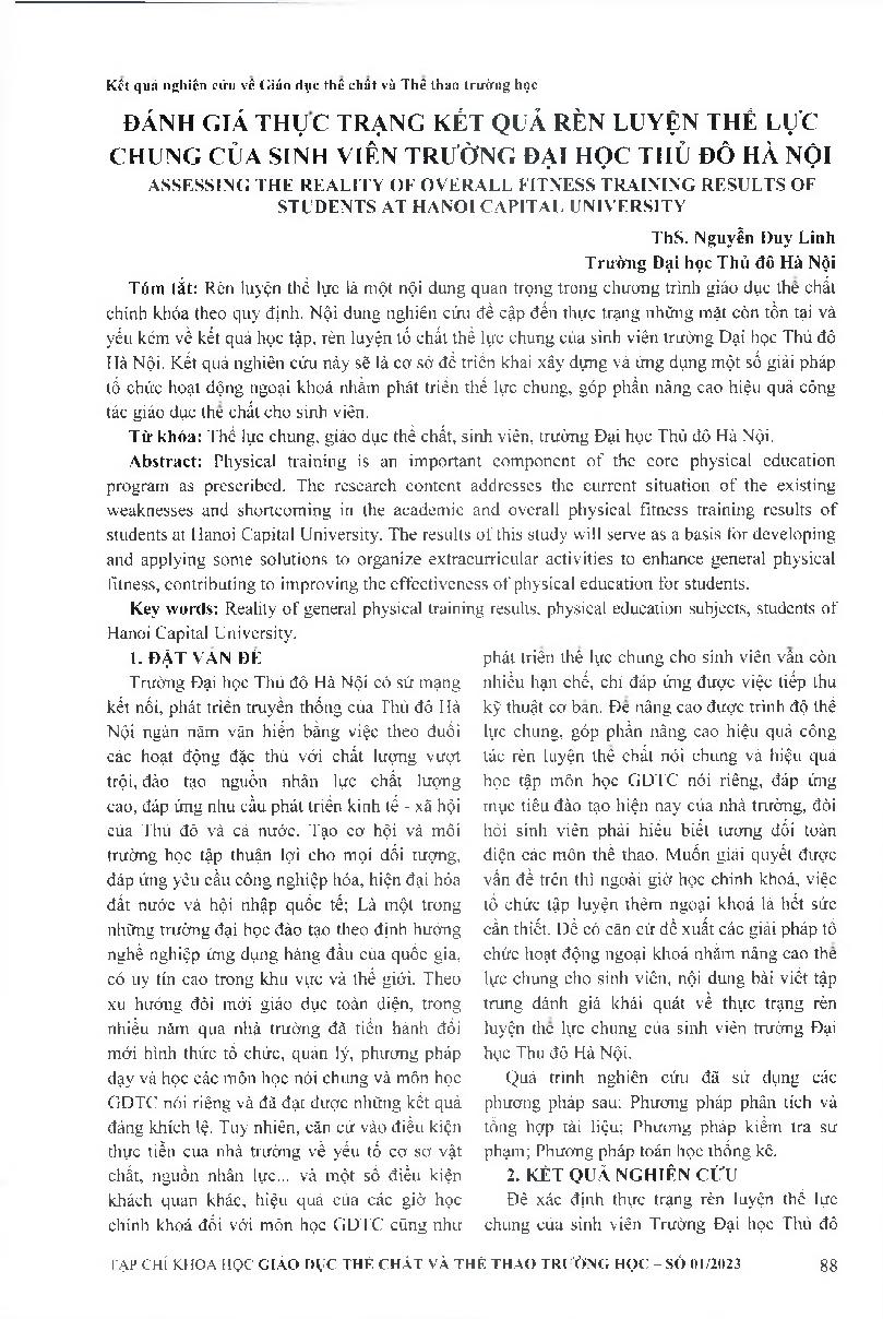 Đánh giá thực trạng kết quả rèn luyện thế lực chung của sinh viên trường Đại học Thủ đô Hà Nội = Assessing the reality of overall fitness training results of students at Hanoi Capital university