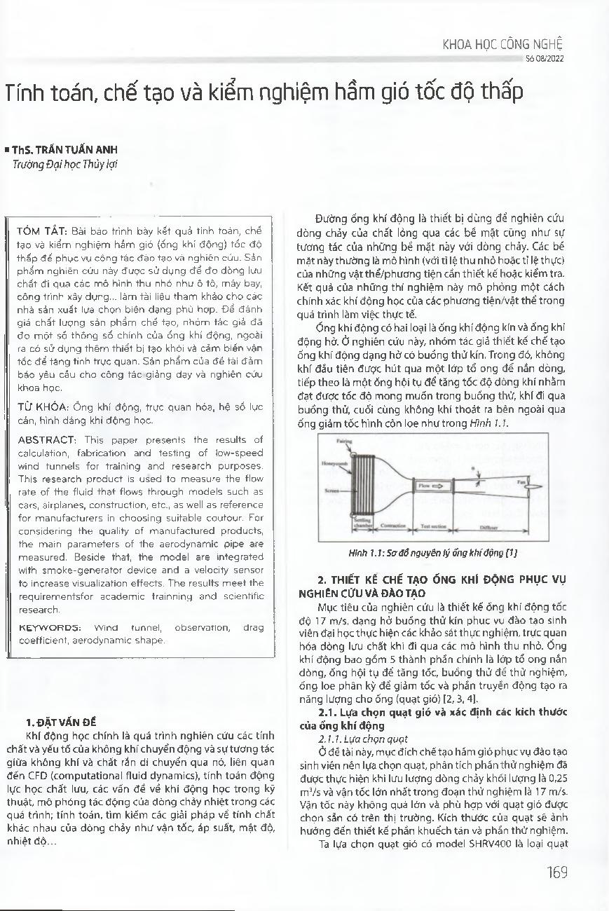 Tính toán, chế tạo và kiểm nghiệm hầm gió tốc độ thấp = Calculation, building and testing of the low speed wind tunnel