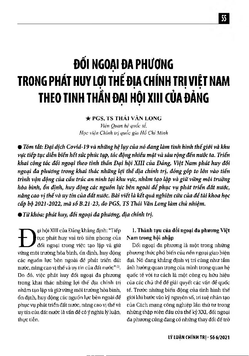 Đối ngoại đa phương trong phát huy lợi thế địa chính trị Việt Nam theo tinh thần đại hội XIII của đảng