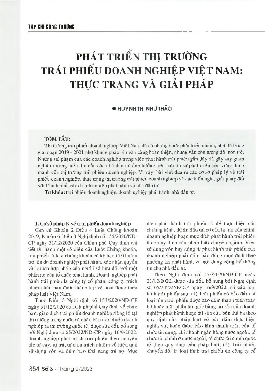 Phát triển thị trường trái phiếu doanh nghiệp Việt Nam - Thực trạng và giải pháp = The development of Vietnam's corporate bond market: Current situation and solutions