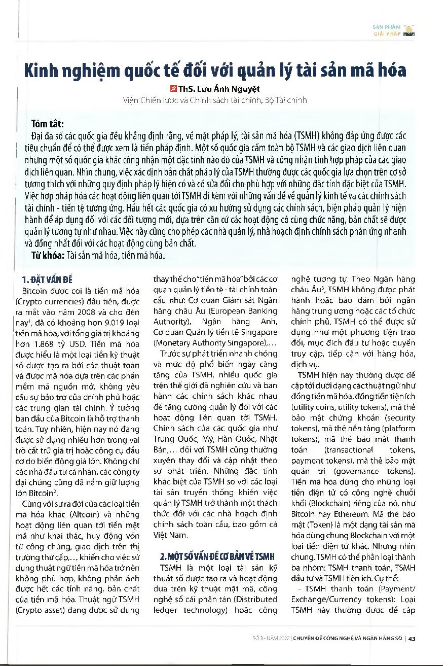 Kinh nghiệm quốc tế đối với quản lý tài sản mã hóa = International experience in crypto asset management