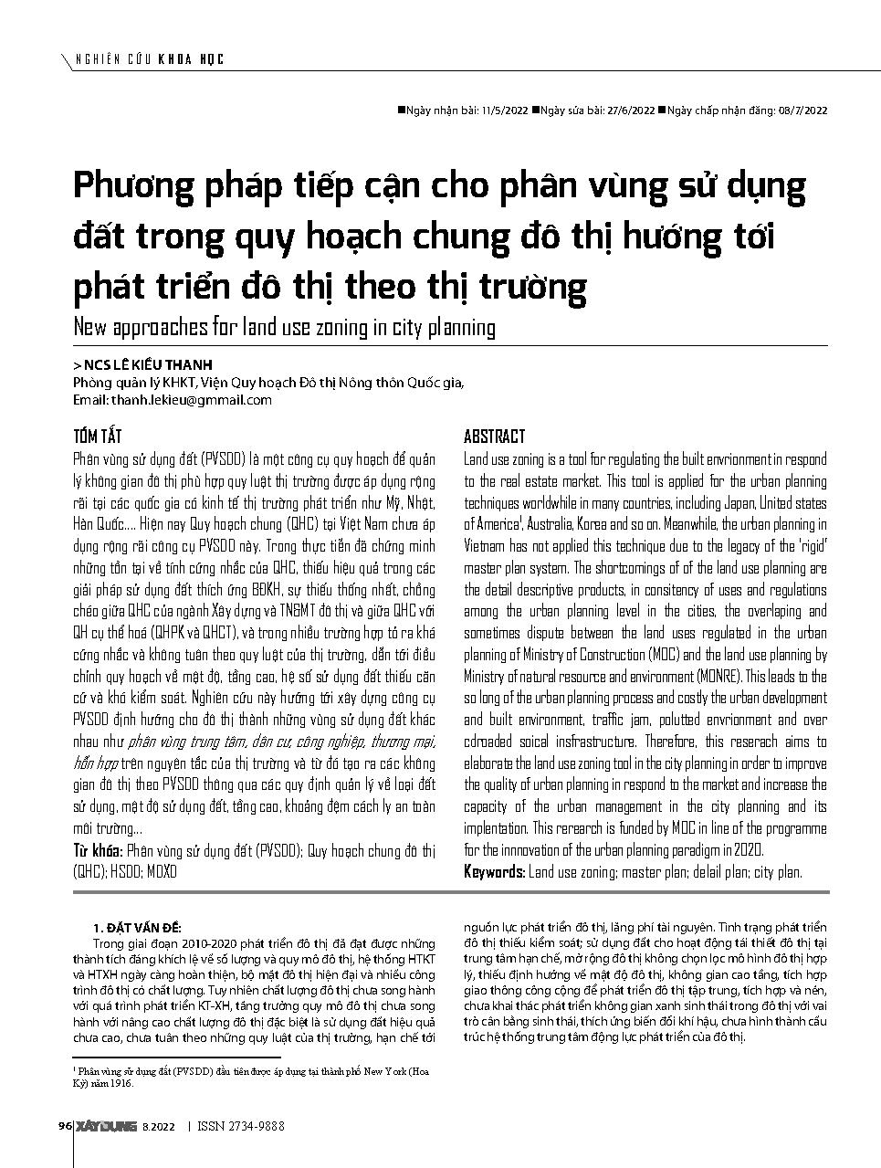 Phương pháp tiếp cận cho phân vùng sử dụng đất trong quy hoạch chung đô thị hướng tới phát triển đô thị theo thị trường = New approaches for land use zoning in city planning