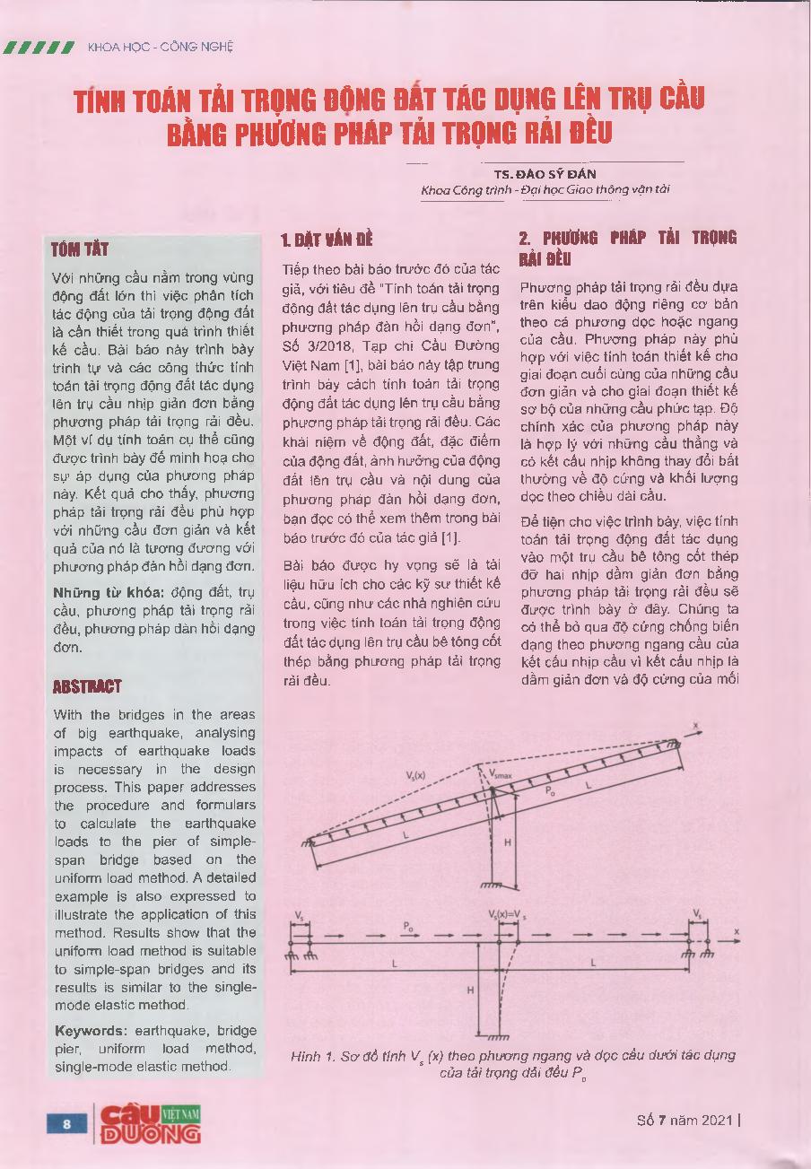 Tính toán tải trọng động đất tác dụng lên trụ cầu bằng phương pháp tải trọng rải đều
