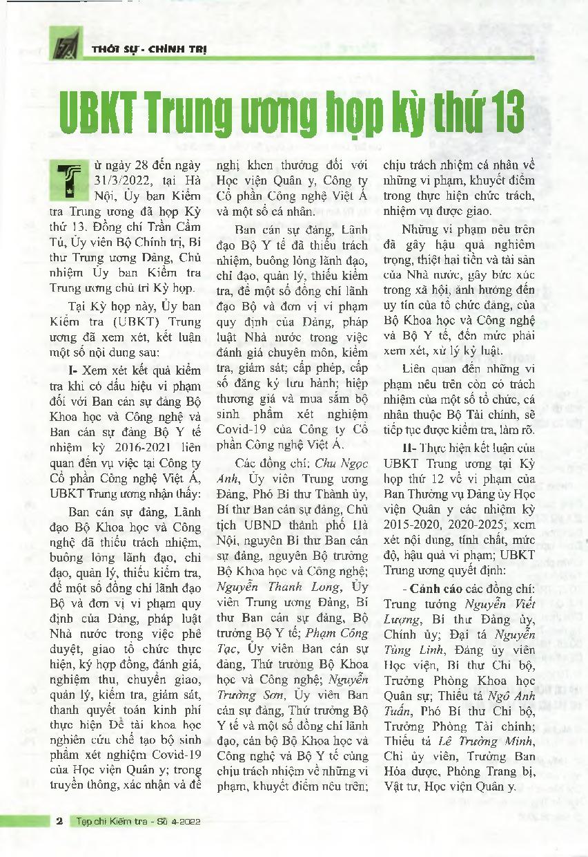 UBKT Trung ương họp kỳ thứ 13
