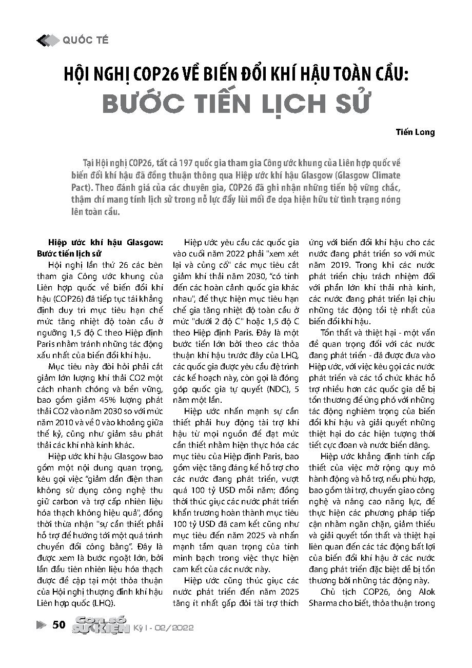 Hội nghị COP26 về biến đổi khí hậu toàn cầu: Bước tiến lịch sử