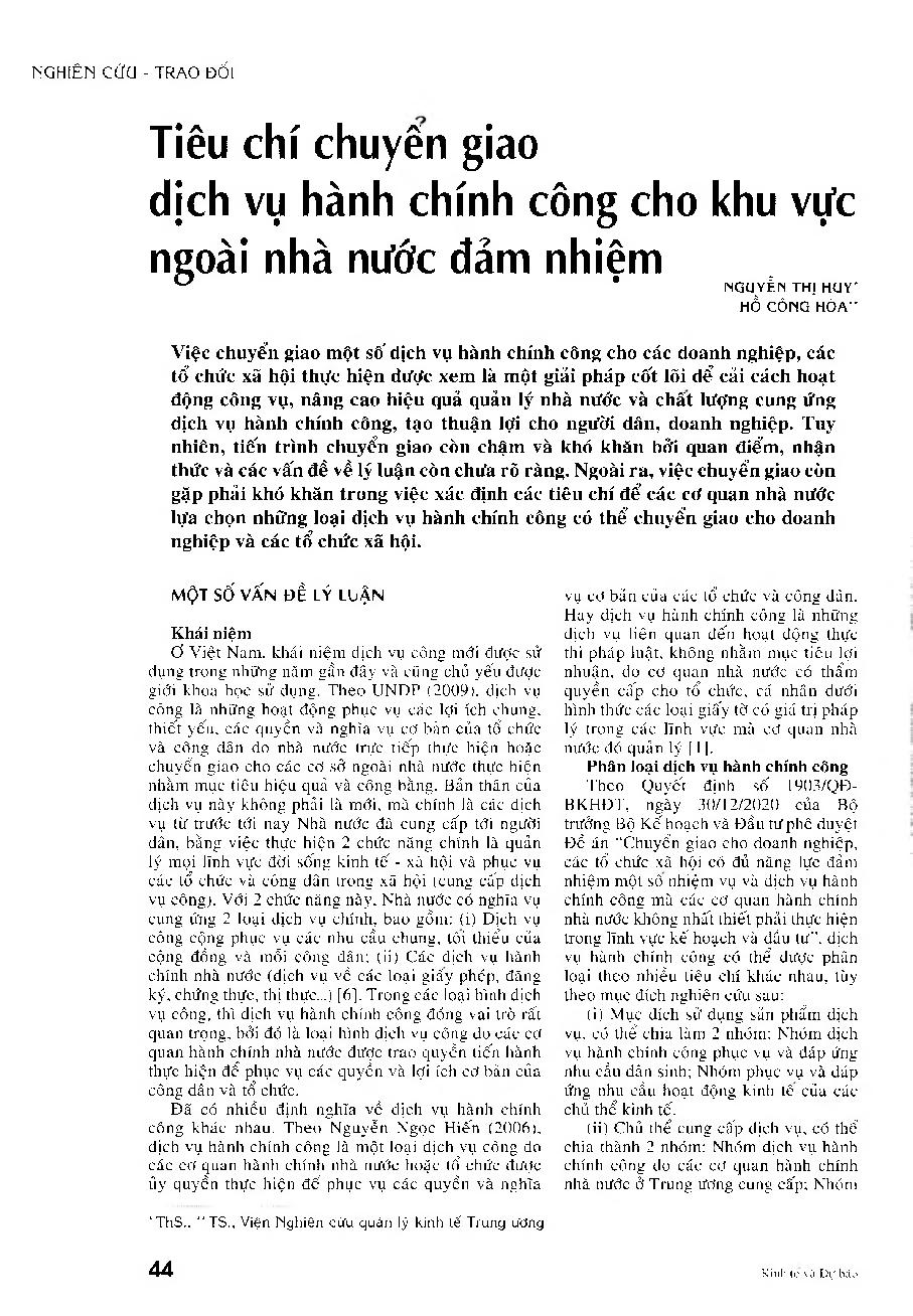 Tiêu chí chuyển giao dịch vụ hành chính công cho khu vực ngoài nhà nước đảm nhiệm