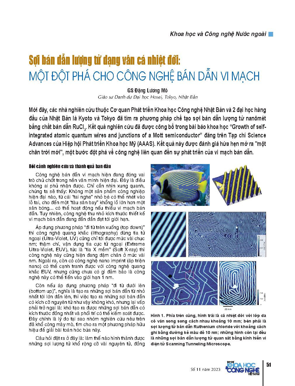 Sợi bán dẫn lượng tử dạng vân cá nhiệt đới: một đột phá cho công nghệ bán dẫn vi mạch = Tropical fish-shaped quantum semiconductor fibers: a breakthrough for microchip semiconductor technology