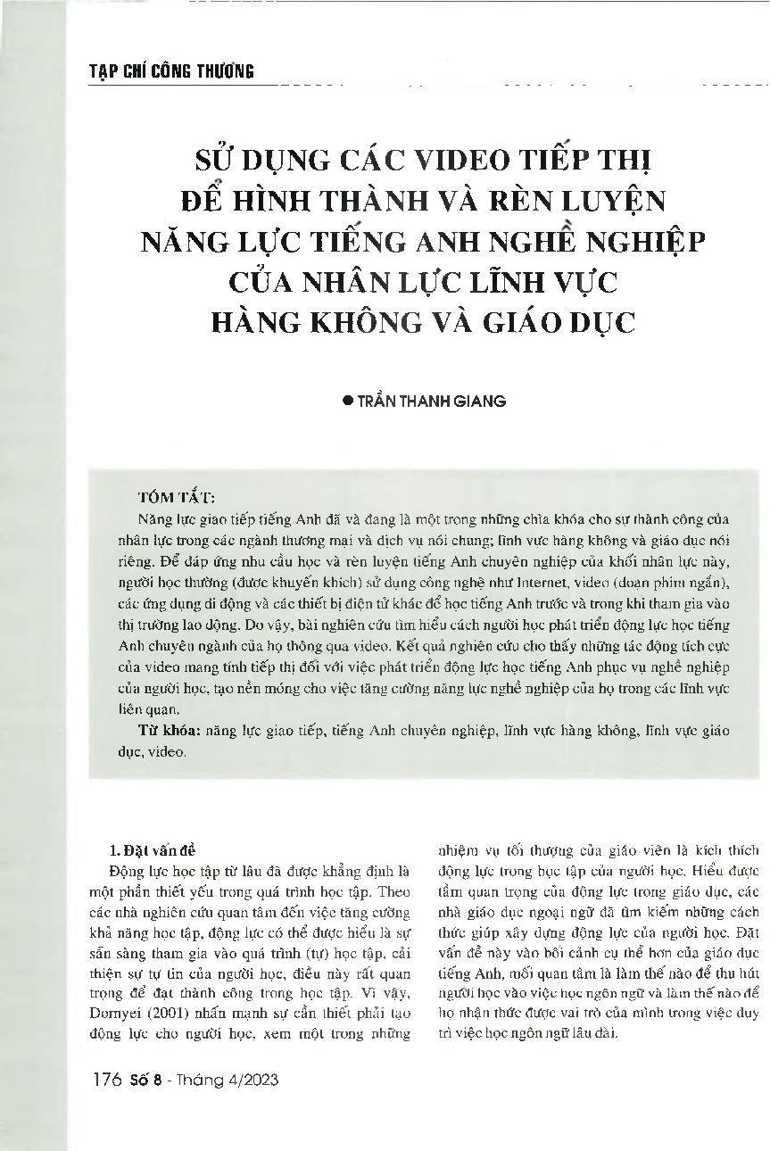 Sử dụng các video tiếp thị để hình thành và rèn luyện năng lực tiếng Anh nghề nghiệp của nhân lực lĩnh vực Hàng không và Giáo dục