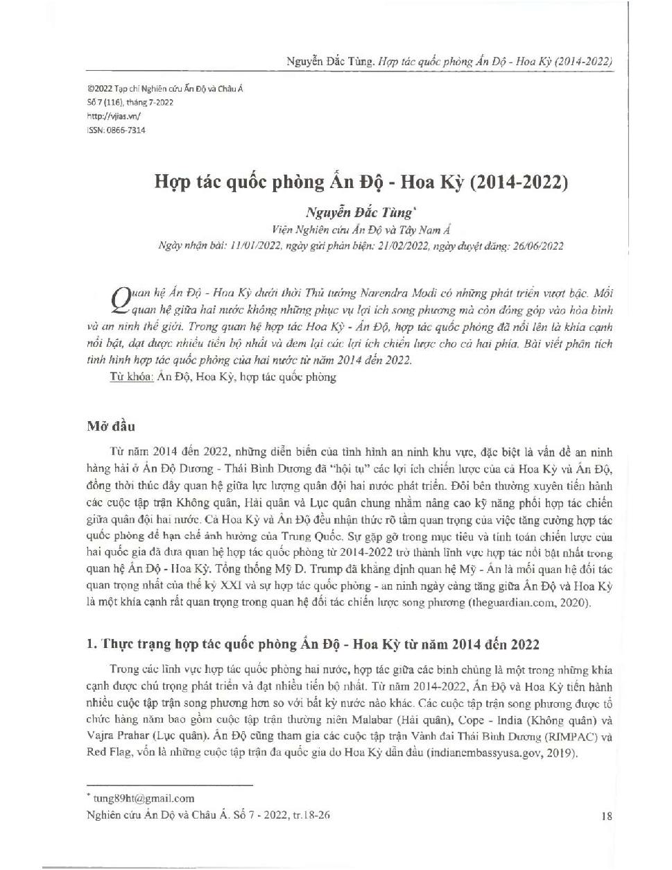 Hợp tác quốc phòng Ấn Độ - Hoa Kỳ (2014-2022) = India - US defense cooperation from 2014 to 2022