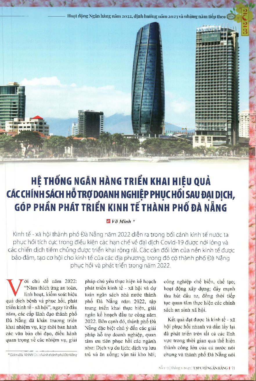 Hệ thống ngân hàng triển khai hiệu quả các chính sách hỗ trợ doanh nghiệp phục hồi sau đại dịch, góp phần phát triển kinh tế thành phố Đà Nẵng = The banking system effectively implements policies to support businesses in recovering from the pandemic, cont