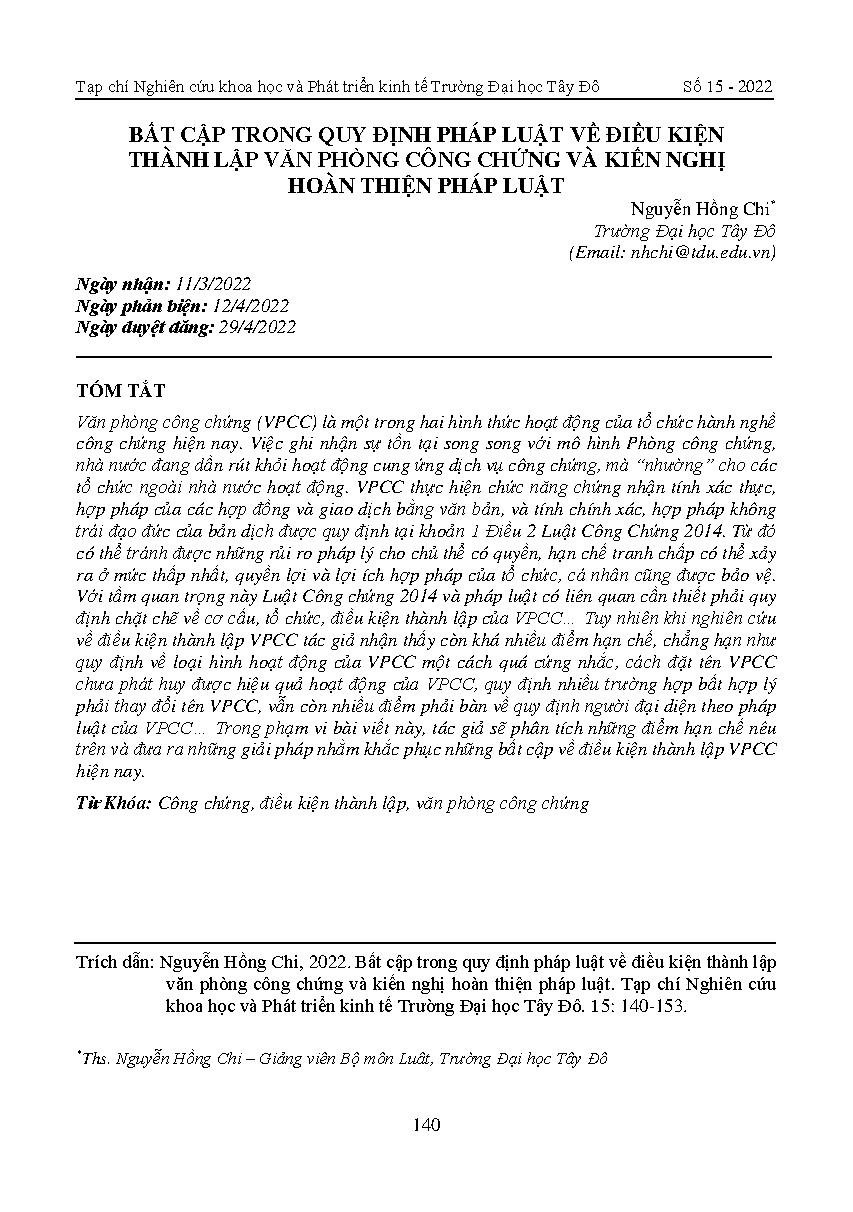 Bất cập trong quy định pháp luật về điều kiện thành lập văn phòng công chứng và kiến nghị hoàn thiện pháp luật = Inadequacies in the legal regulations on conditions for the establishment of notary offices and recommendations for legal improvement