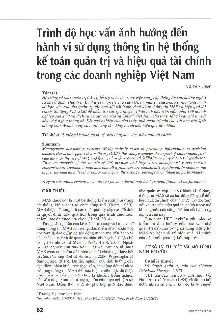 Trình độ học vấn ảnh hưởng đến hành vi sử dụng thông tin hệ thống kê toán quản trị và hiệu quả tài chính trong các doanh nghiệp Việt Nam