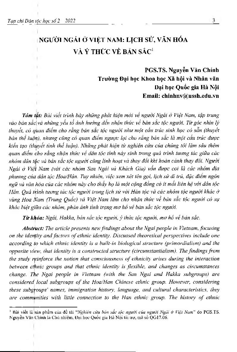 Người Ngái ở Việt Nam: lịch sử, văn hóa và ý thức về bản sắc = The Ngai in Vietnam: history, culture and sense of identity