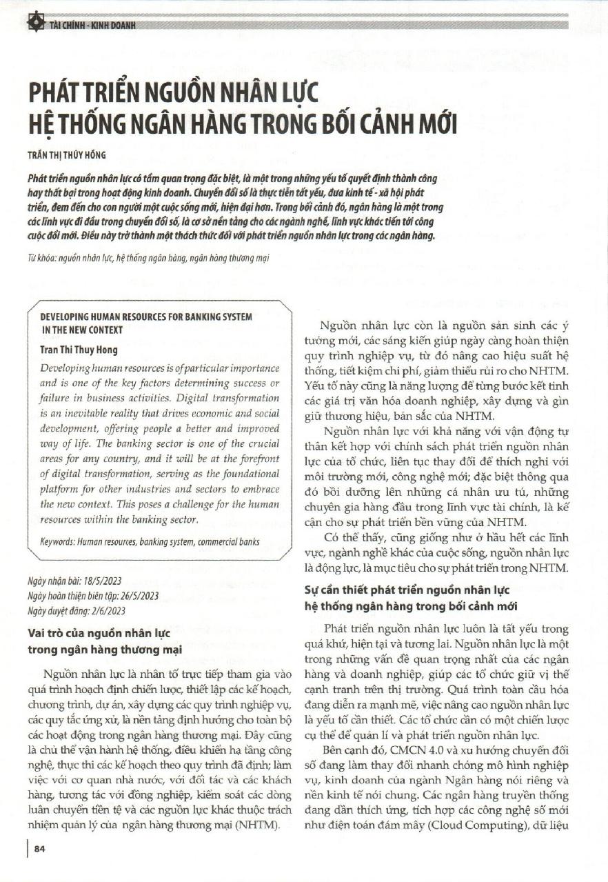Phát triển nguồn nhân lực hệ thống ngân hàng trong bối cảnh mới