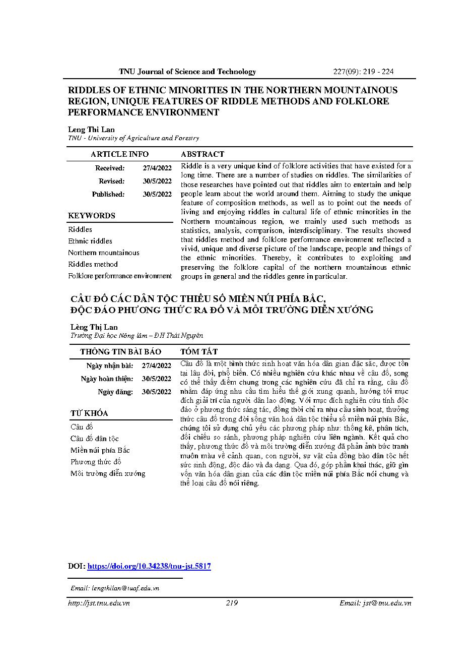 Câu đố các dân tộc thiểu số miền núi phía bắc, độc đáo phương thức ra đố và môi trường diễn xướng = Riddles of ethnic minorities in the northern mountainous region, unique features of riddle methods and folklore performance environment