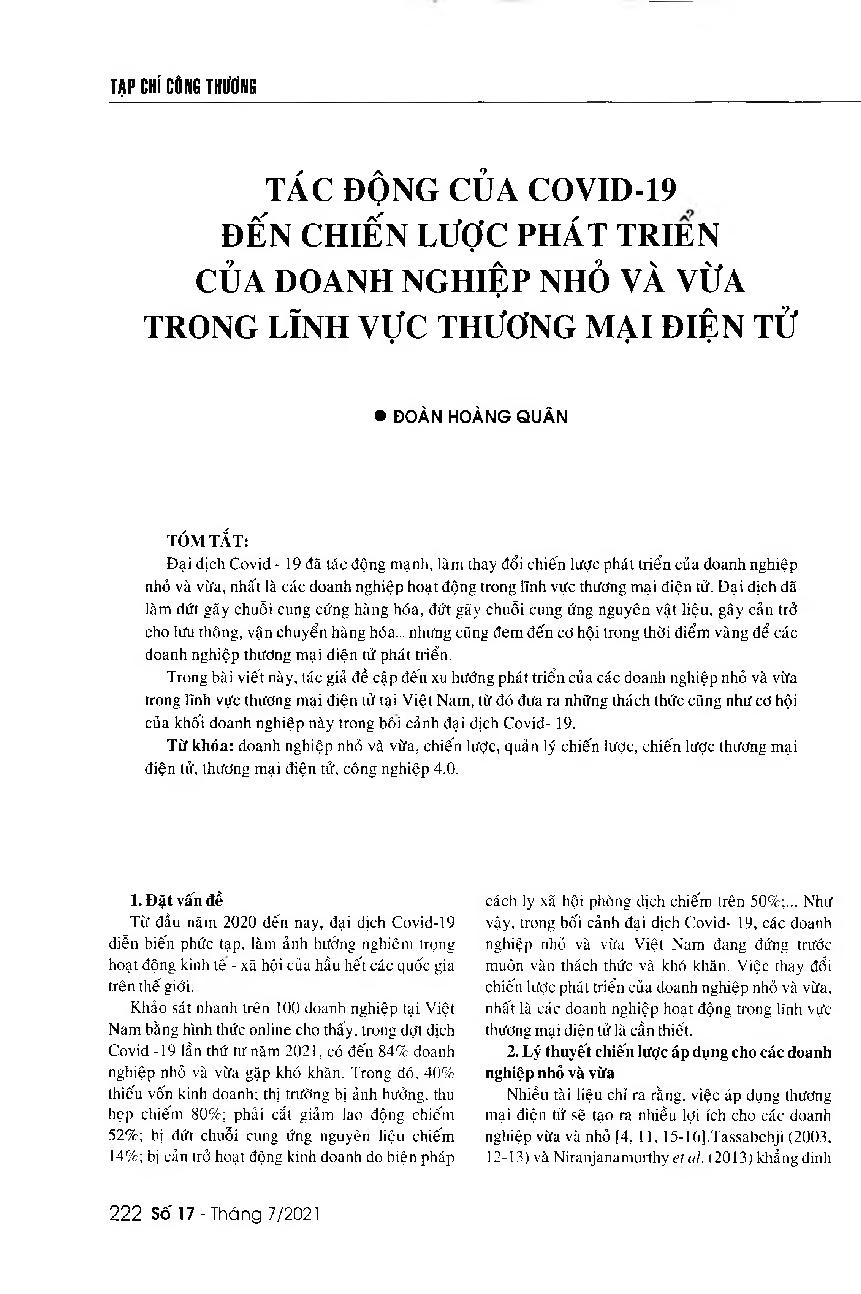 Tác động của Covid-19 ảnh hưởng đến chiến lược doanh nghiệp vừa và nhỏ tại Việt Nam trong lĩnh vực thương mại điện tử = Impacts of the COVID-19 pandemic on the development strategies of e-commerce SMEs