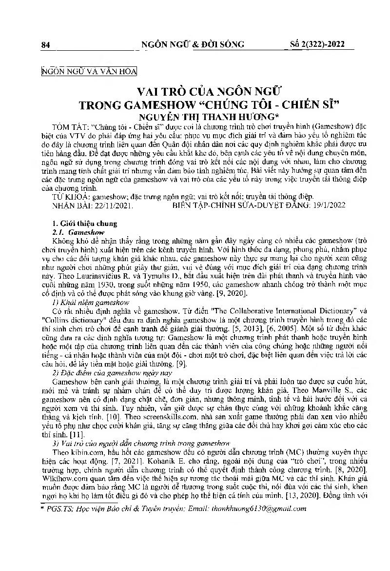 Vai trò của ngôn ngữ trong gameshow “chúng tôi - chiến sĩ” = The role of language in Gameshow “We - Soldiers”