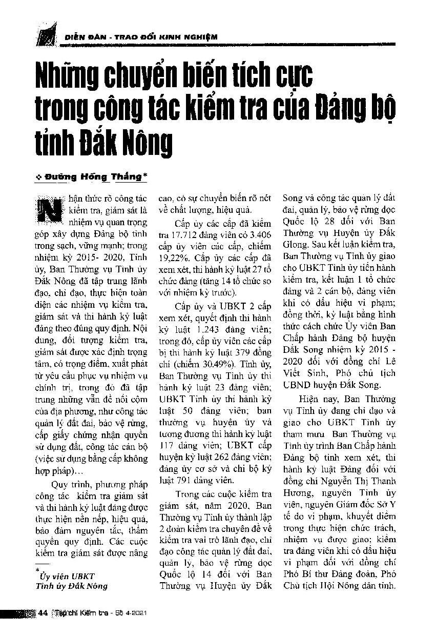 Những chuyển biến tích cực trong công tác kiểm tra của Đảng bộ tỉnh Đăk Nông
