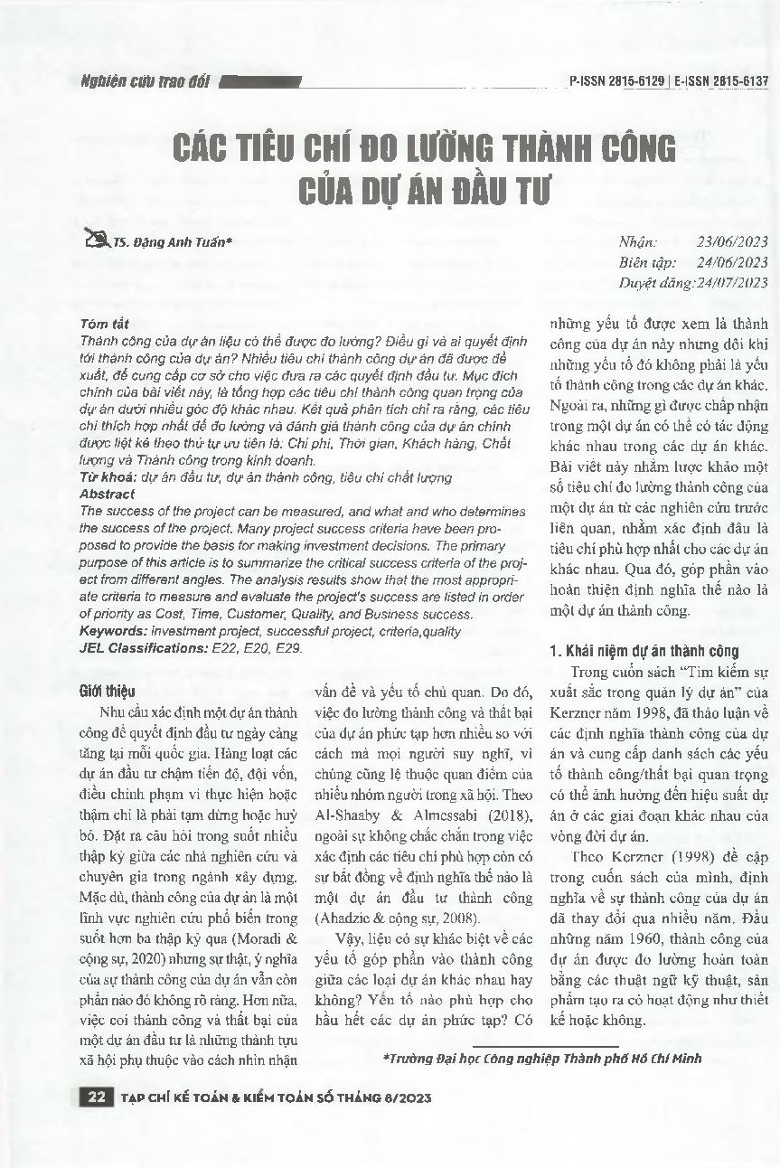 Các tiêu chí đo lường thành công của dự án đầu tư