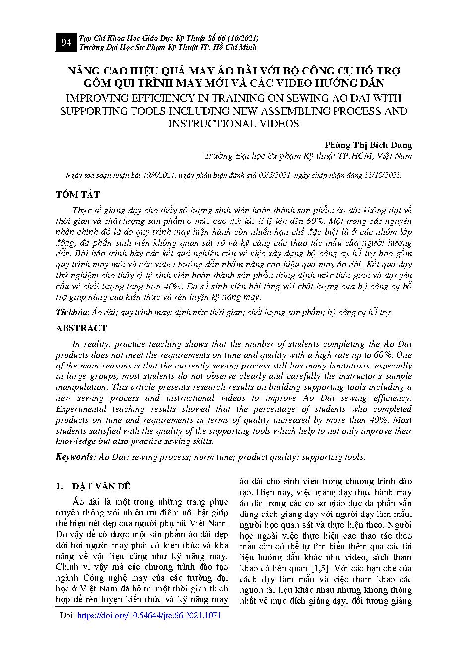Nâng cao hiệu quả may áo dài với bộ công cụ hỗ trợ gồm qui trình may mới và các video hướng dẫn