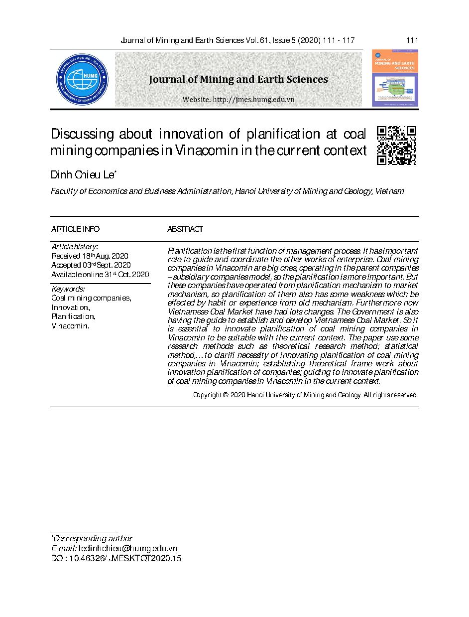 Bàn về đổi mới kế hoạch hóa tại các doanh nghiệp khai thác than thuộc Tập đoàn Công nghiệp Than – Khoáng sản Việt Nam = Discussing about innovation of planification at coal mining companies in Vinacomin in the current context