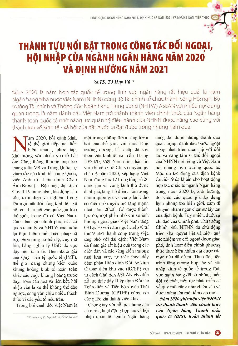 Thành tựu nổi bật trong công tác đối ngoại, hội nhập của ngành Ngân hàng năm 2020 và định hướng năm 2021