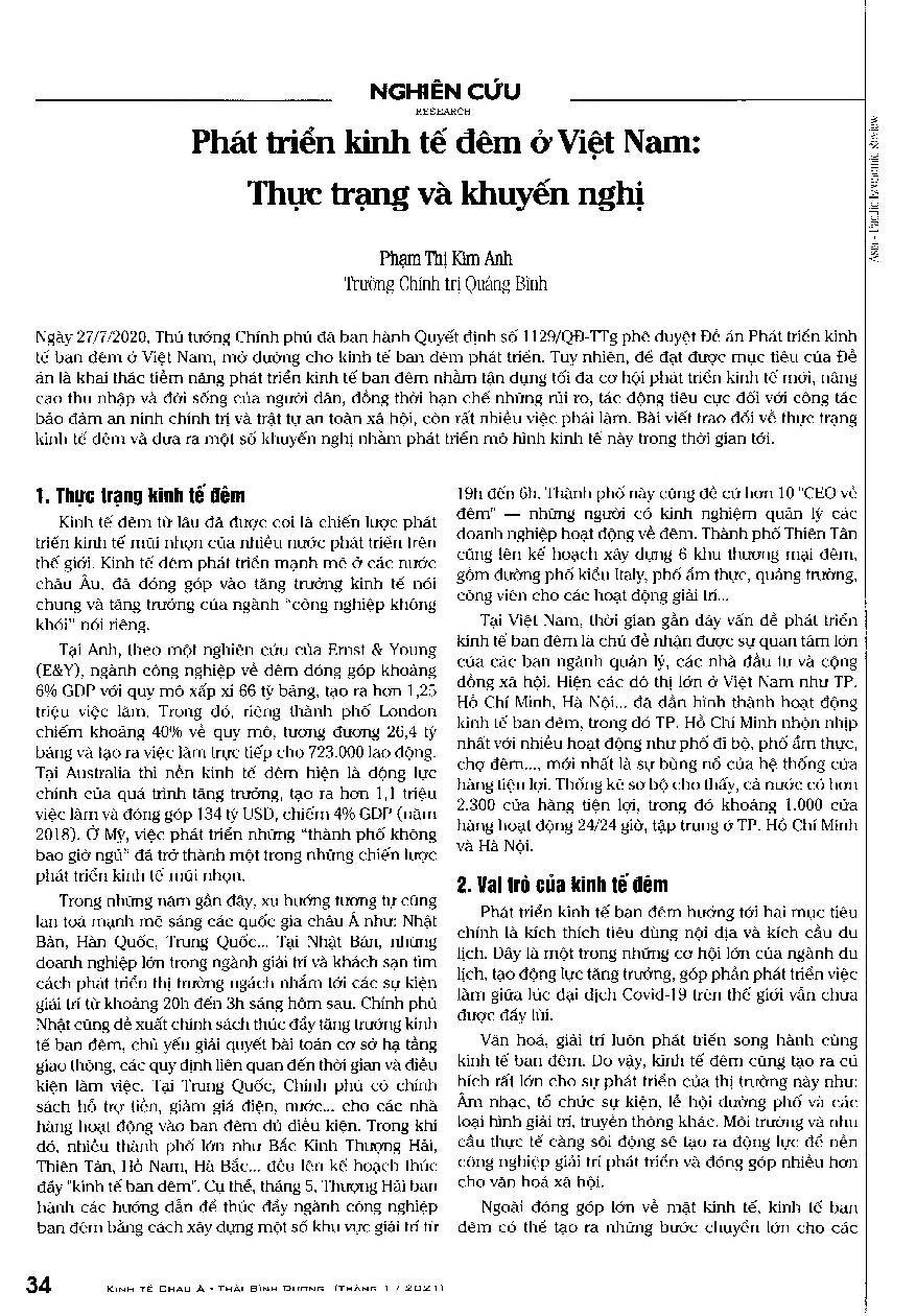Phát triển kinh tế đêm ở Việt Nam: Thực trạng và khuyến nghị