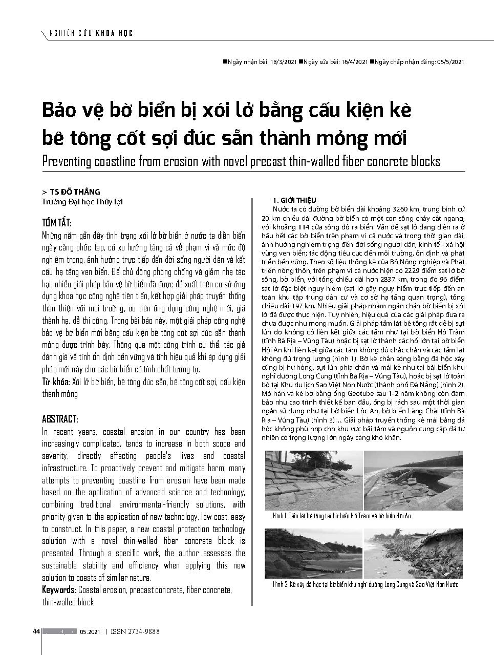 Bảo vệ bờ biển bị xói lở bằng cấu kiện kè bê tông cốt sợi đúc sẵn thành mỏng mới
