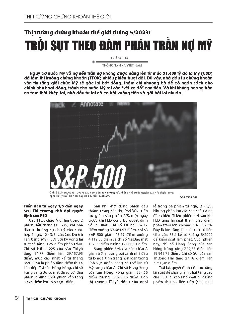 Thị trường chứng khoán thế giới tháng 5/2023: Trồi sụt theo đàm phán trần nợ Mỹ