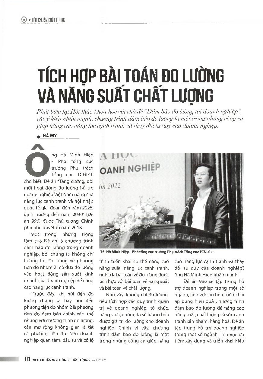 Tích hợp bài toán đo lường và năng suất chất lượng = Integrating measurement and quality productivity problems