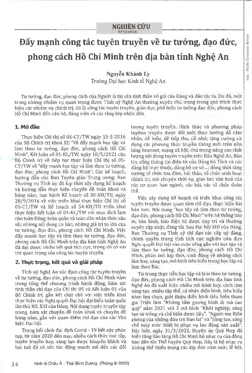 Đẩy mạnh công tác tuyên truyền về tư tưởng, đạo đức, phong cách Hồ Chí Minh trên địa bàn tỉnh Nghệ An