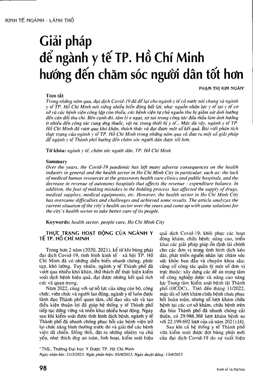 Giải pháp để ngành y tế TP. Hồ Chí Minh hướng đến chăm sóc người dân tốt hơn