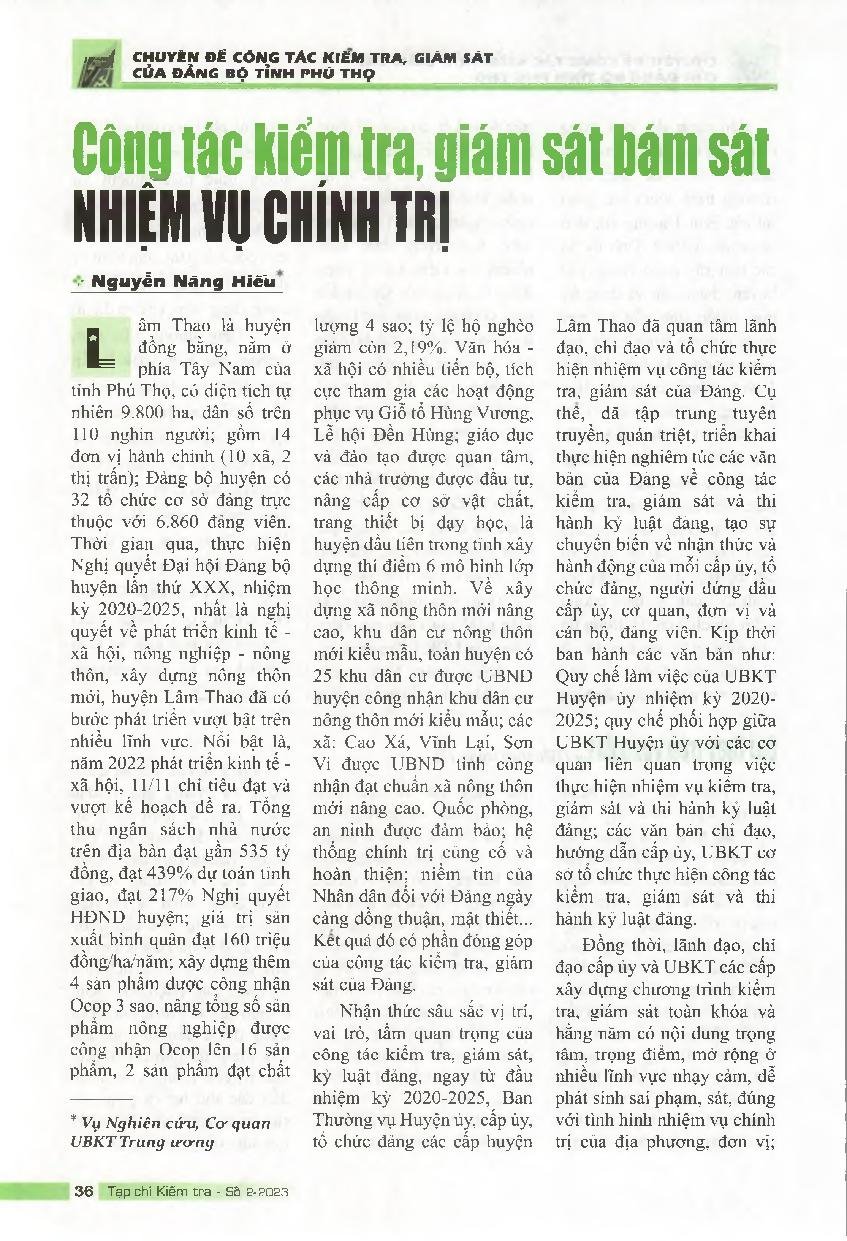 Công tác kiểm tra, giám sát bám sát nhiệm vụ chính trị.