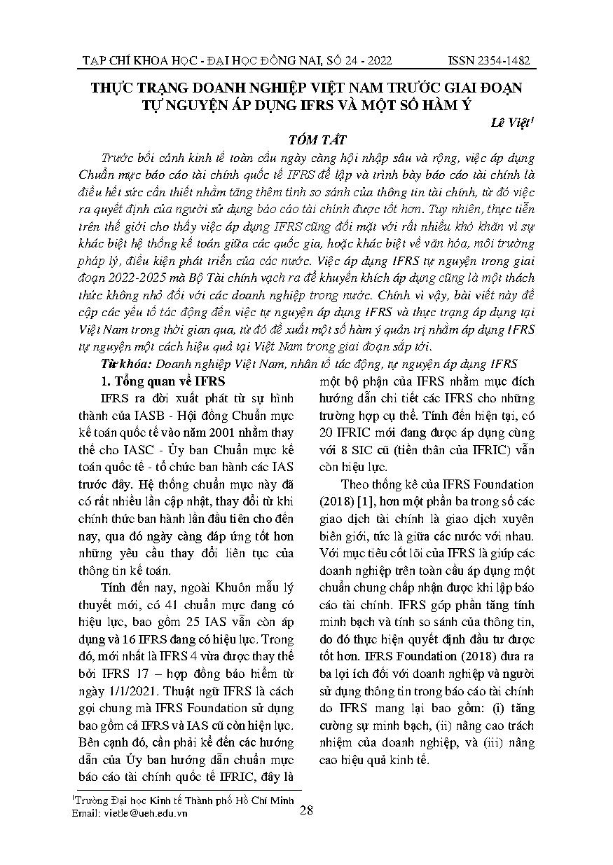 Thực trạng doanh nghiệp Việt Nam trước giai đoạn tự nguyện áp dụng IFRS và một số hàm ý = Situation of vietnam enterprises before the voluntary stage of ifrs application and some implications