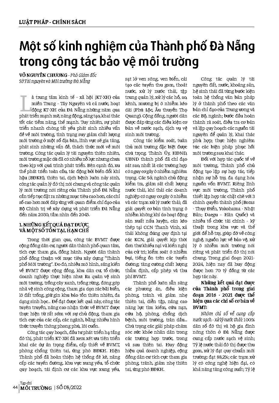 Một số kinh nghiệm của Thành phố Đà Nẵng trong công tác bảo vệ môi trường