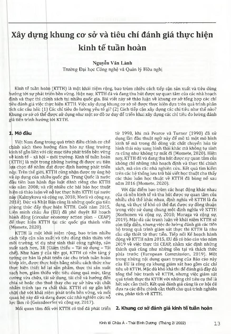 Xây dựng khung cơ sở và tiêu chí đánh giá thực hiện kinh tế tuần hoàn