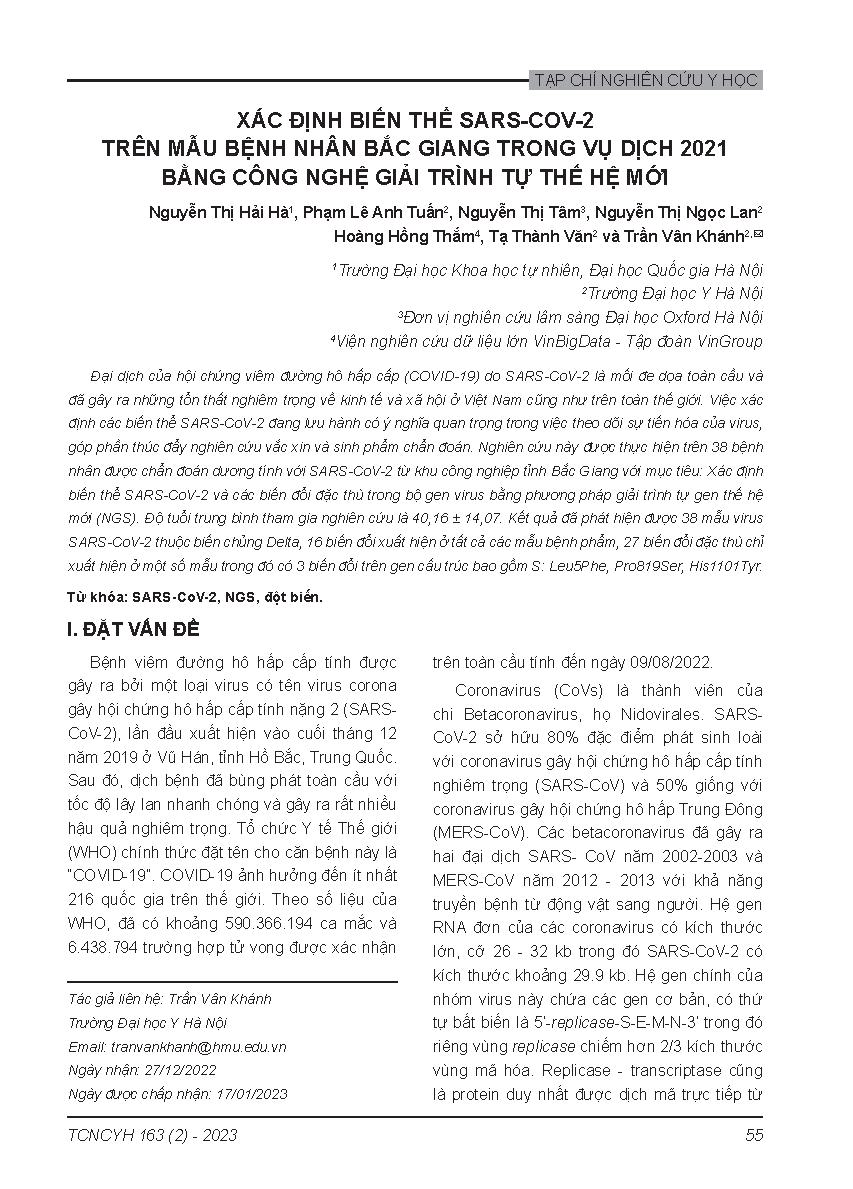 Xác định biến thể SARS-CoV-2 trên mẫu bệnh nhân Bắc Giang trong vụ dịch 2021 bằng công nghệ giải trình tự thế hệ mới