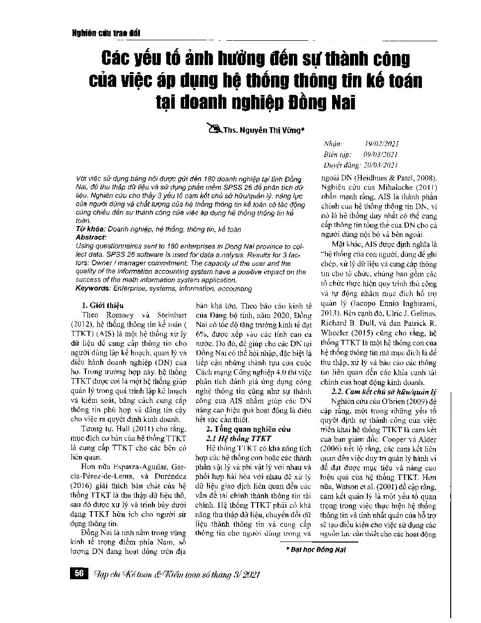Các yếu tố ảnh hưởng đến sự thành công của việc áp dụng hệ thống thông tin kế toán tại doanh nghiệp Đồng Nai