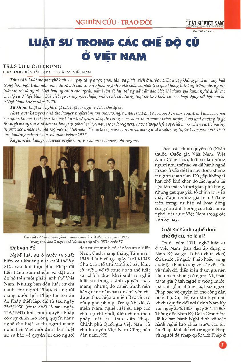 Luật sư trong các chế độ cũ ở Việt Nam = Lawyers in the old regimes in Vietnam