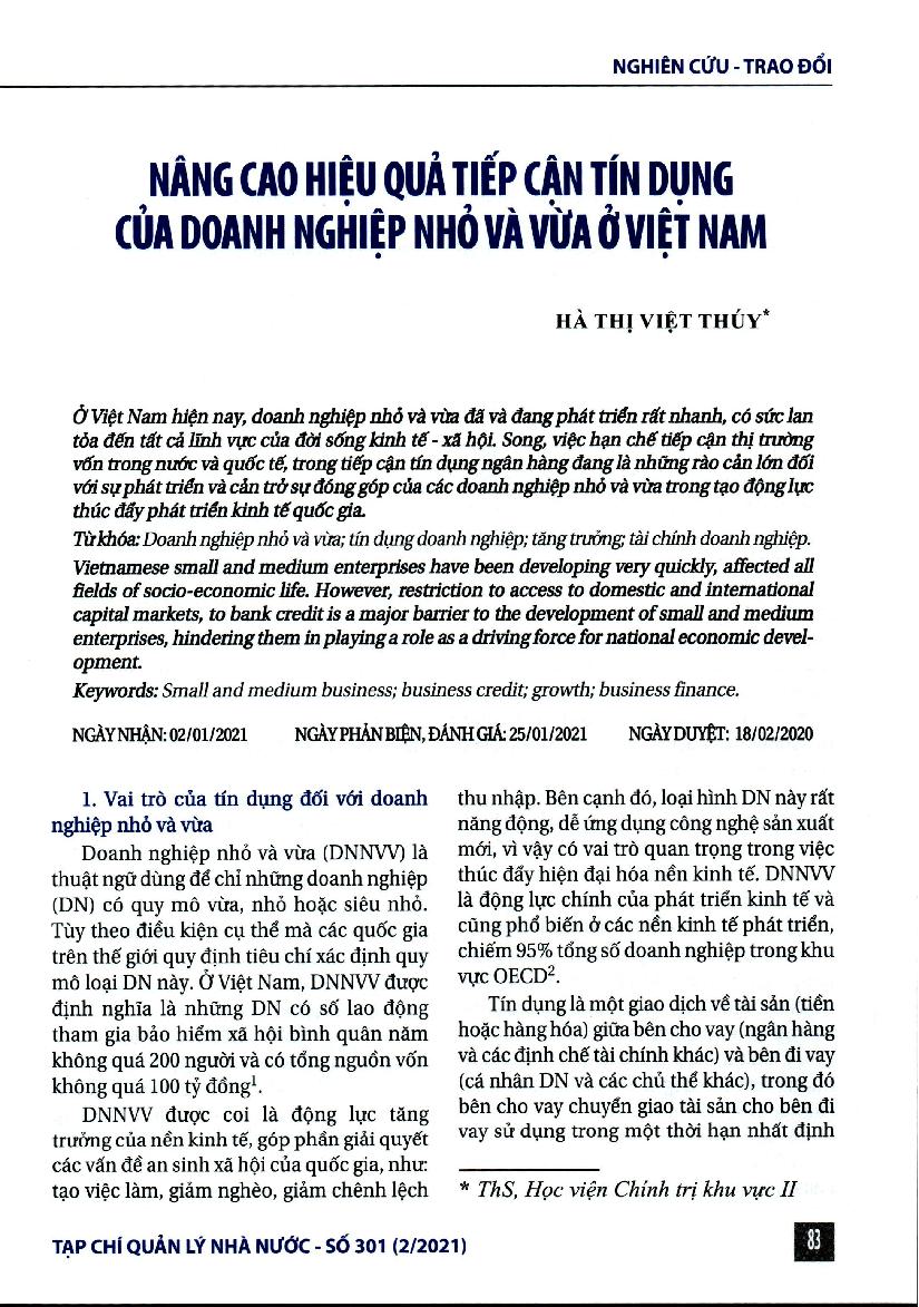 Nâng cao hiệu quả tiếp cận tín dụng của doanh nghiệp nhỏ và vừa ở Việt Nam