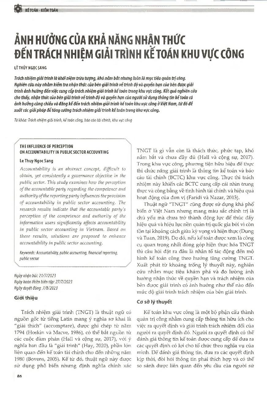 Ảnh hưởng của khả năng nhận thức đến trách nhiệm giải trình kế toán khu vực công