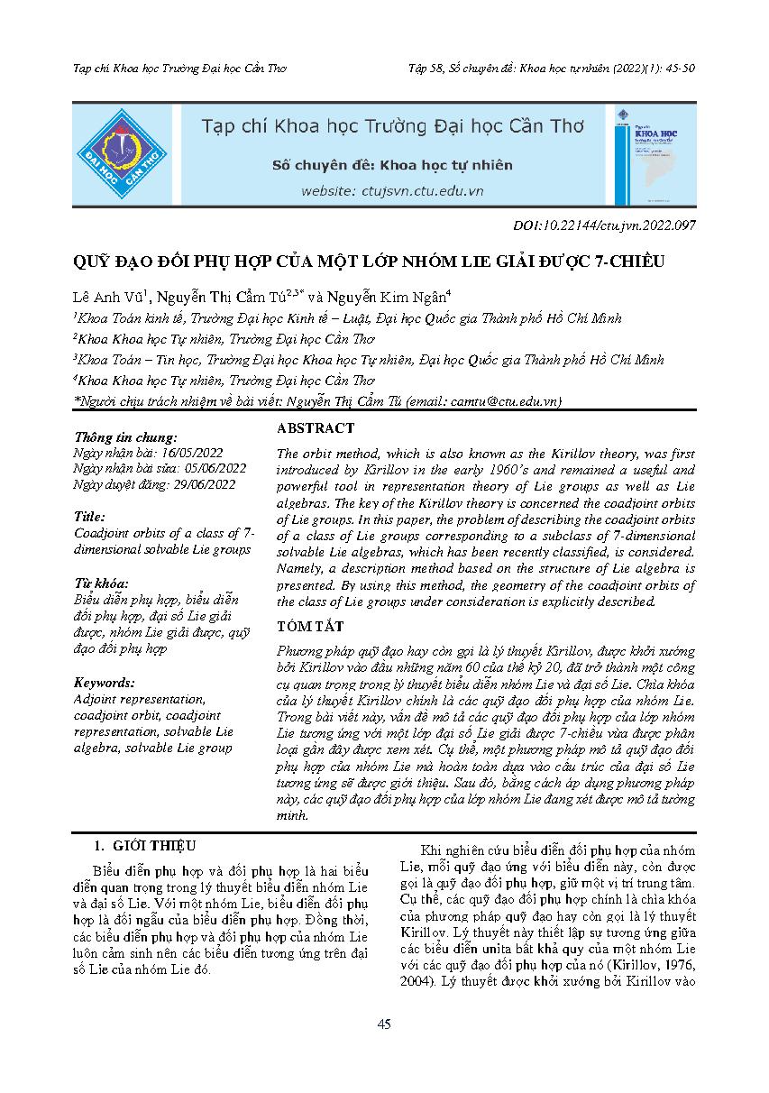 Tác giả: Lê Anh Vũ; Nguyễn Thị Cẩm Tú; Nguyễn Kim Ngân;
