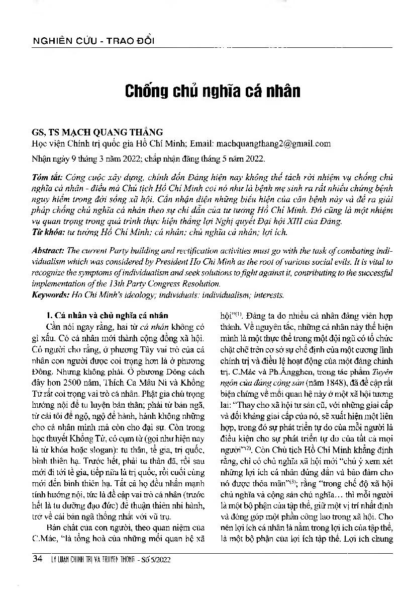 Chống chủ nghĩa cá nhân = Fighting against individualism