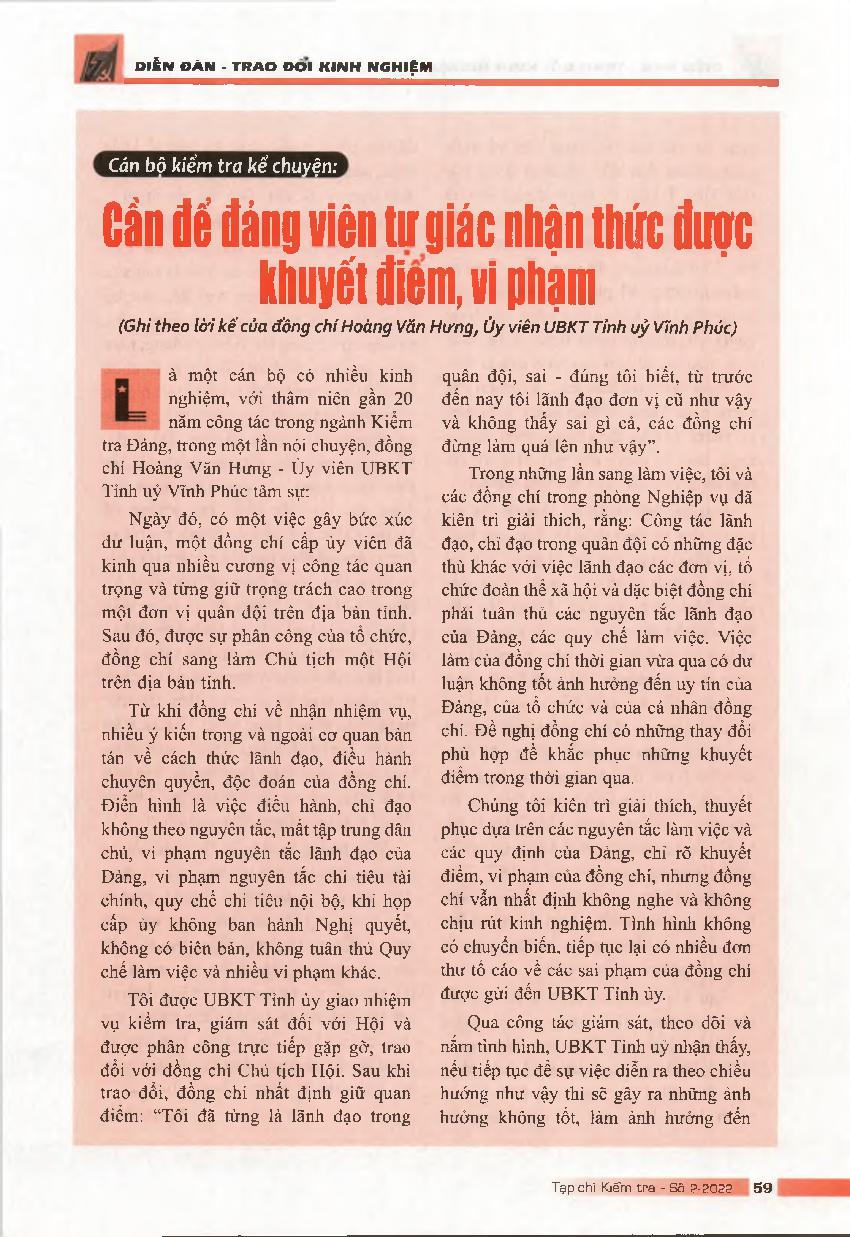 Cần để đảng viên tự giác nhận thức được khuyết điểm, vi phạm