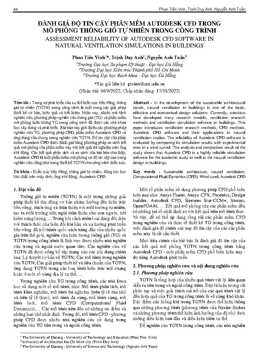 Đánh giá độ tin cậy phần mềm autodesk cfd trong mô phỏng thông gió tự nhiên trong công trình = Assessment reliability of autodesk cfd software in natural ventilation simulations in buildings