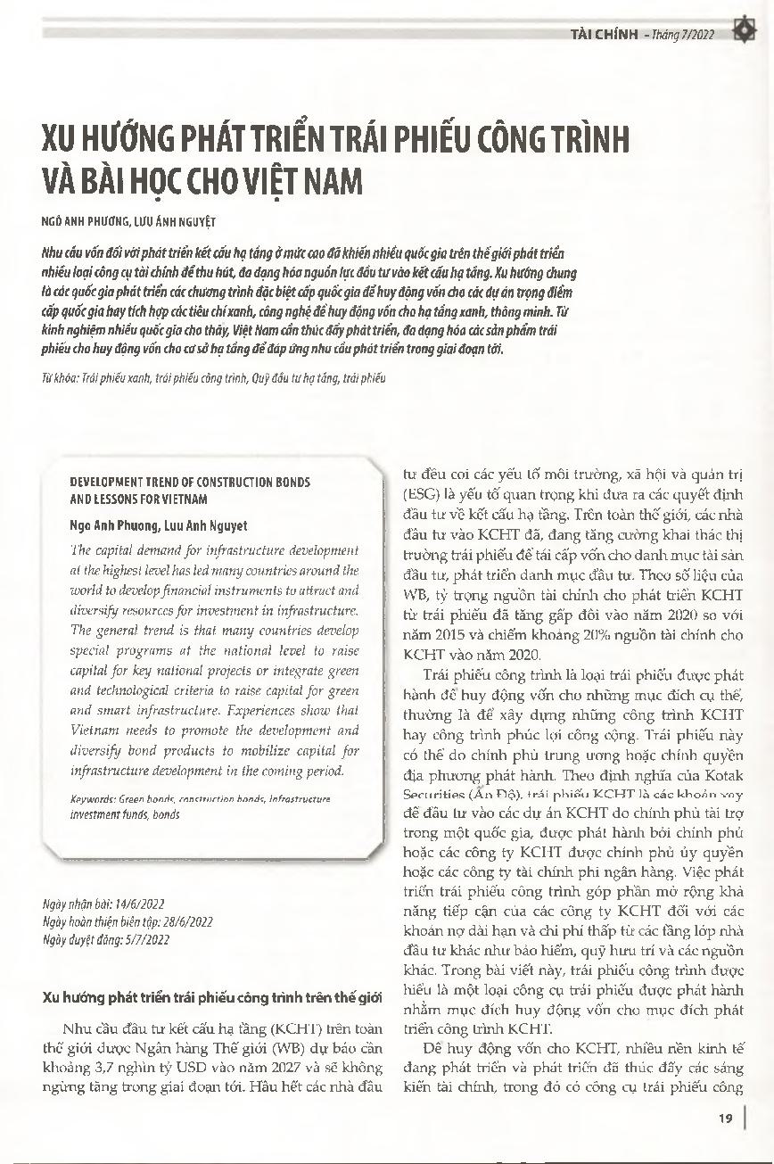 Xu hướng phát triển trái phiếu công trình và bài học cho Việt Nam = Development trend of construction bonds and lessons for Vietnam