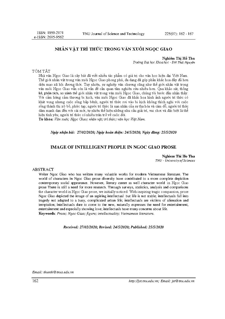 Nhân vật trí thức trong văn xuôi Ngọc Giao = Image of intelligent people in Ngoc Giao prose
