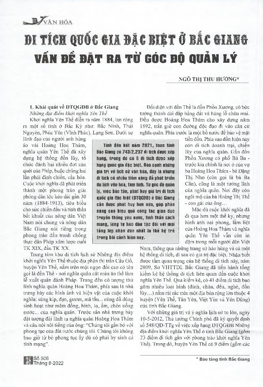 Di tích quốc gia đặc biệt ở Bắc Giang vấn đề đặt ra từ góc độ quản lý = A special national relic in Bac Giang is a problem from a management perspective