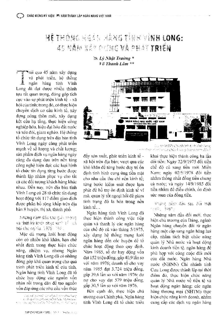 Hệ thống ngân hàng tỉnh Vĩnh Long: 45 năm xây dựng và phát triển