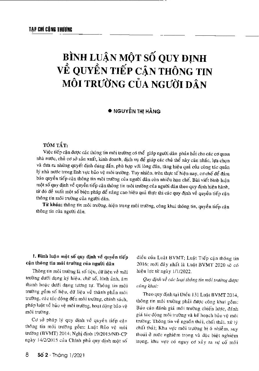 Bình luận một số quy định về quyền tiếp cận thông tin môi trường của người dân = An analysis on regulations on people's right of access to environmental information